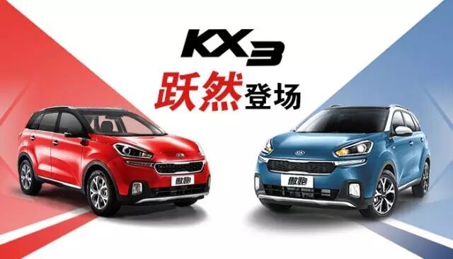 2015年3月12日,东风悦达起亚全新SUV力作KX3在郑州跃然上市,售价区间为11.28~18.68万元,提供1.6L、2.0L、1.6T三种排量车型共计9款车型。为充分满足中国年轻消费者的个性化选择,KX3除提供透明白、钛银色、极光黑、流光银、琥珀棕、梦幻蓝、牡丹红7款单色车型外,还提供青花瓷与丹墨色两款双色车型。搭配黑色、黑米、黑棕三种内饰颜色,全面满足消费者的多元化需求。
