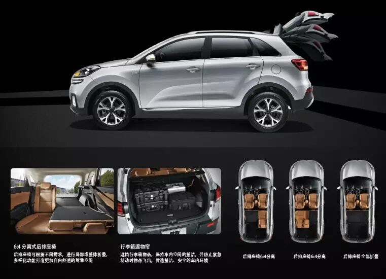 KX3车身长4,270mm / 宽1,780mm /高1,630mm,2,590mm轴距在同级别中更具优势。更加值得称赞的,则是KX3对内部空间的优化利用。其通过对车舱空间分配及座椅位置进行优化调整,让前排及后排空间达到最佳利用状态,带来更好的乘坐感。此外,KX3后排座椅经过折叠后所打造出的规整储物空间,可容纳更多的大件物品;同时,还可实现6:4折叠,让空间更具柔性,满足多样化的乘坐及储物需求。