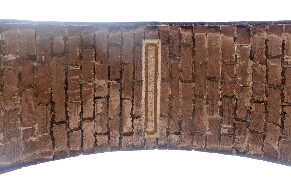 在渡槽的一个拱桥下方,有明显的字迹,长焦拉近看了一下,上面刻的是渡槽的建成时间“公元一九六七年四月建成”,那么可以推断这座渡槽是上个世纪六十年代初开始兴建的。