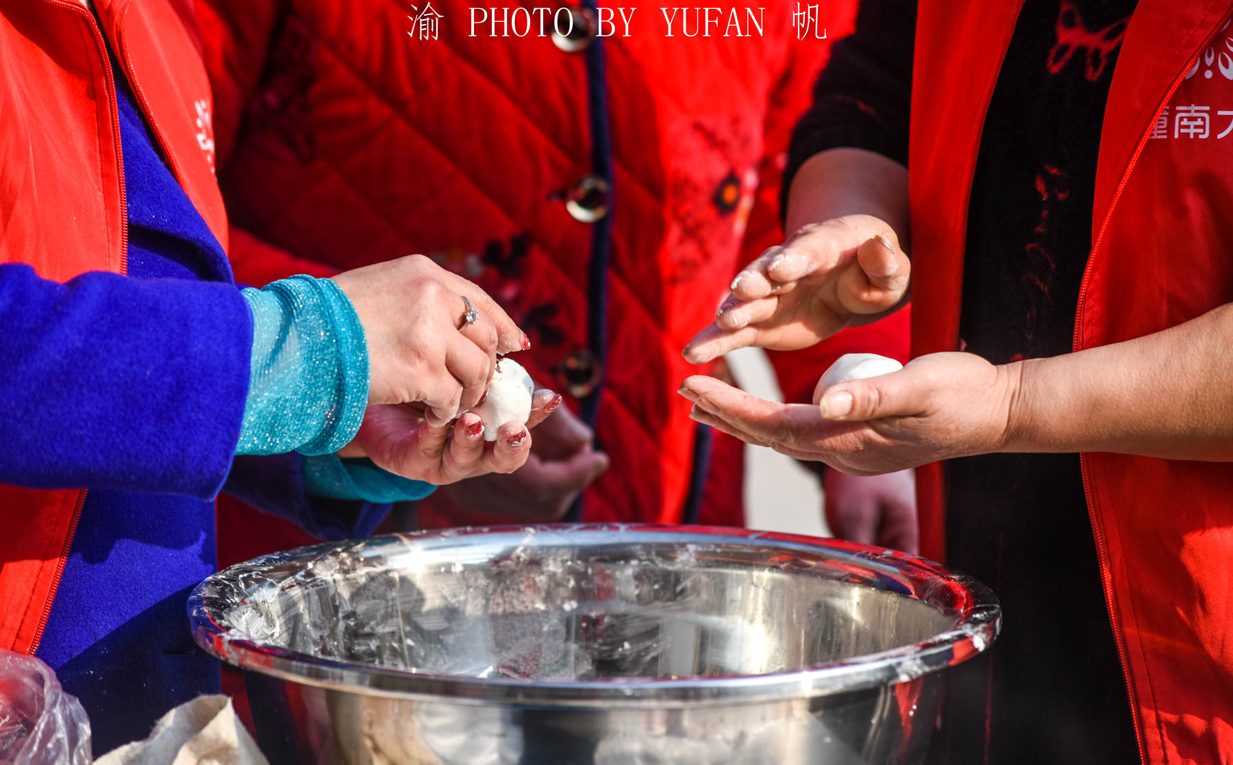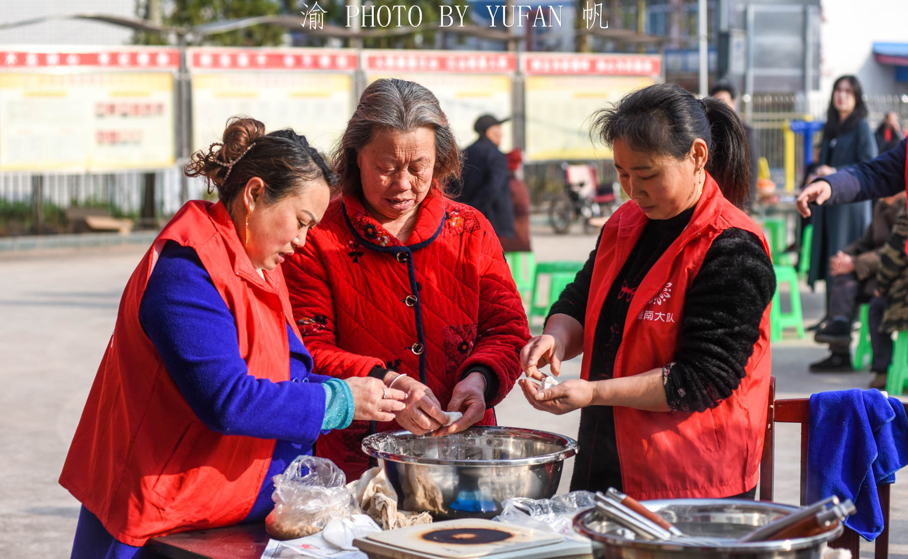 借着老人们观看表演的时间,工作人员在一旁紧密锣鼓的搓汤圆、包饺子、煮汤圆,不一会儿,热气腾腾的汤圆便端上的桌子,一人一碗,每位老人都有,喜欢吃的还可以添。 2 D9 o/ f7 X3 W) _+ E