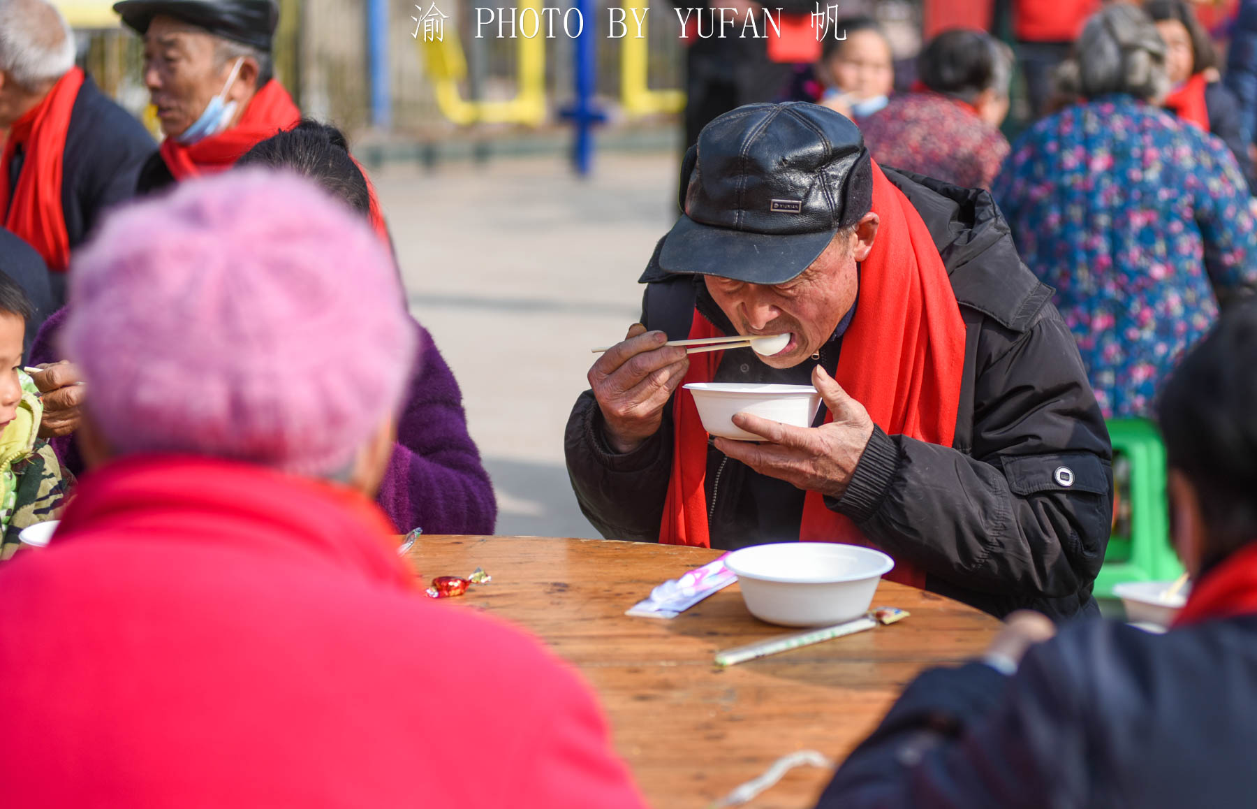 9 `0 c% r) A8 b5 x6 m2 T) a+ D瞧瞧,老人们吃得多开心啊,汤圆都是包了馅的,馅里不仅有芝麻、花生,还放有糖,所以吃起来软糯可口,甜在嘴里,暖在心中,欢乐之情写在脸上、溢于言表。